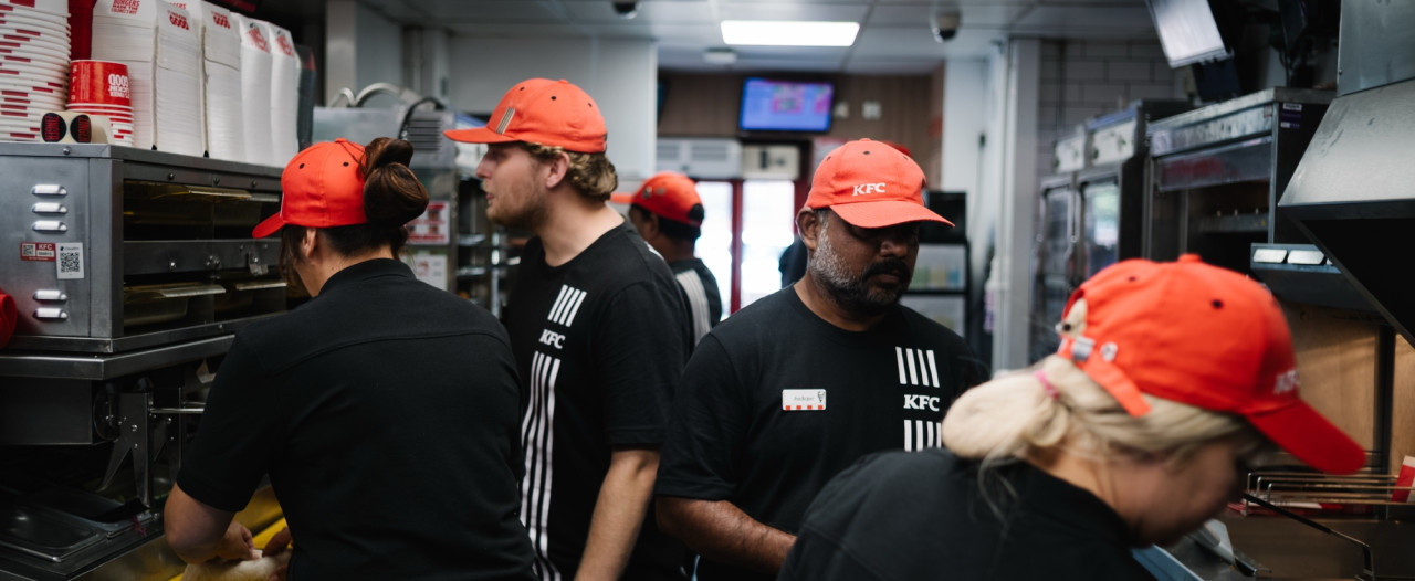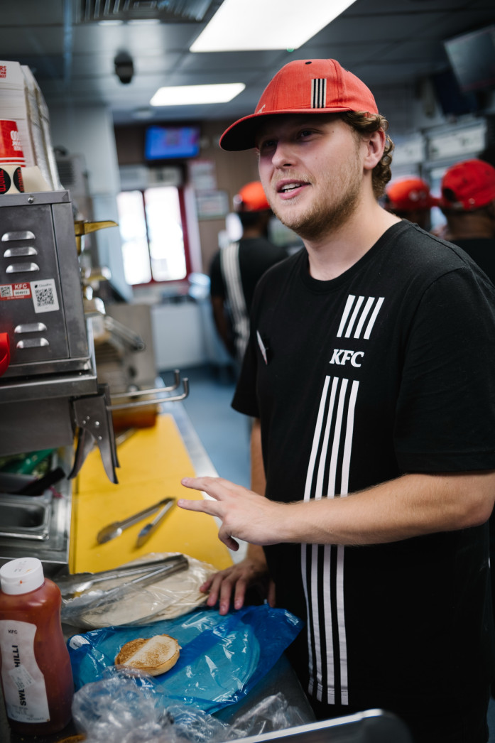 Or it might be middle of house, where where you'll be cooking up fries, popcorn chicken, chicken bites and hash browns. You’ll also whip up sides like gravy and corn, build burgers and twister wraps, and manage the chute (that’s KFC insider speak for packing our food into boxes).